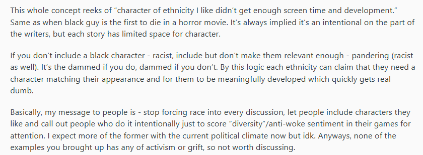According to the Redditer from Learn: people believe they’re damned if they do, damned if they don’t. They don’t think race should be a factor when discussing this type of erasure. Each story has a limited space for each character.